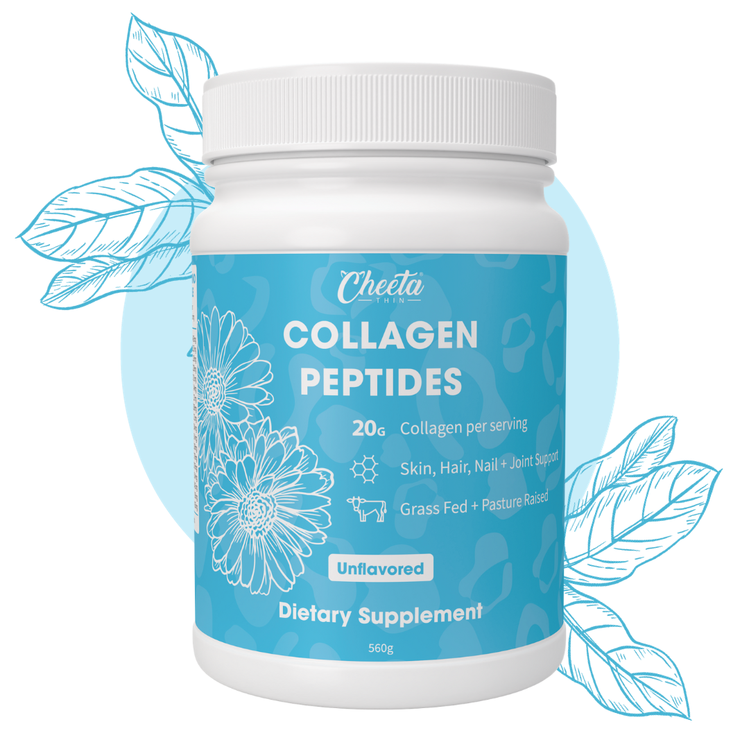CheetaThin Collagen Powder is sourced from grass-fed, pasture-raised bovine. It includes Type I & III Collagen and delivers 20g of collagen per serving. As an added benefit, it's free from gluten and dairy, and designed to suit any lifestyle.